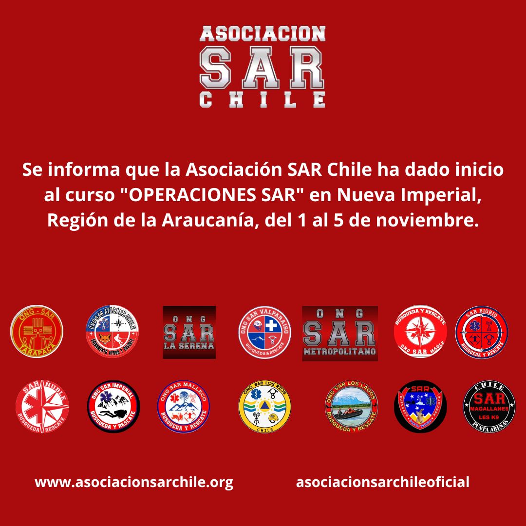 📢 Se informa que la Asociación SAR Chile ha dado inicio al curso «OPERACIONES SAR» en Nueva Imperial, Región de la Araucanía, del 1 al 5 de noviembre. 🚑🏔️ ¡Actividad en desarrollo! Pronto más informaciones desde la actividad. #ASCH #ASOCIACIONSARCHILE #SARChile #Emergencias #CursoOPERACIONESSAR.